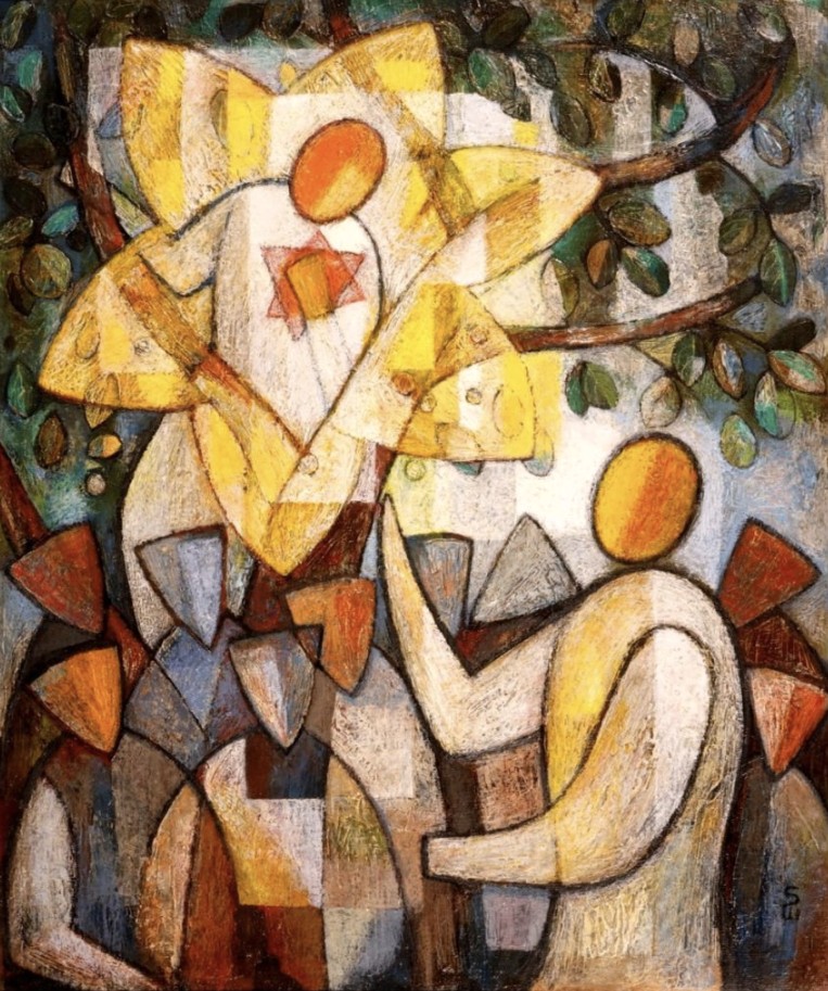 Als we deze zondag verder lezen in het Lucasevangelie horen we van een ontmoeting tussen Jezus en Zacheüs. Hij wil graag Jezus zien, maar Zacheüs heeft een probleem: hij is klein en kan niet over de mensen heen kijken. Uit het verhaal blijkt ook waarom ze hem geen ruimte geven om naar voren te komen. De Japanse schilder Soichi Watanabe legt het moment vast dat Zacheüs in de boom zit en Jezus hem aanspreekt.